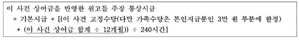나) 그러나 이 사건 상여금도 통상임금에 포함되어야 하므로 통상시급은 아래와 같은 산식에 따라 산정되어야 한다.