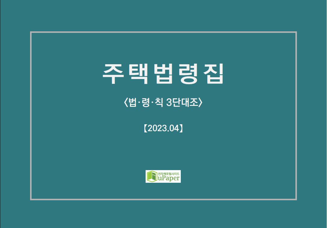 ◈ ‘주택법령집(2023.04)’은 2023년 4월 12일까지 개정 공포된 주택법과 그 시행령·시행규칙을 3단으로 대조하여 편집 되었습니다. 주요 특징은 아래와 같습니다.